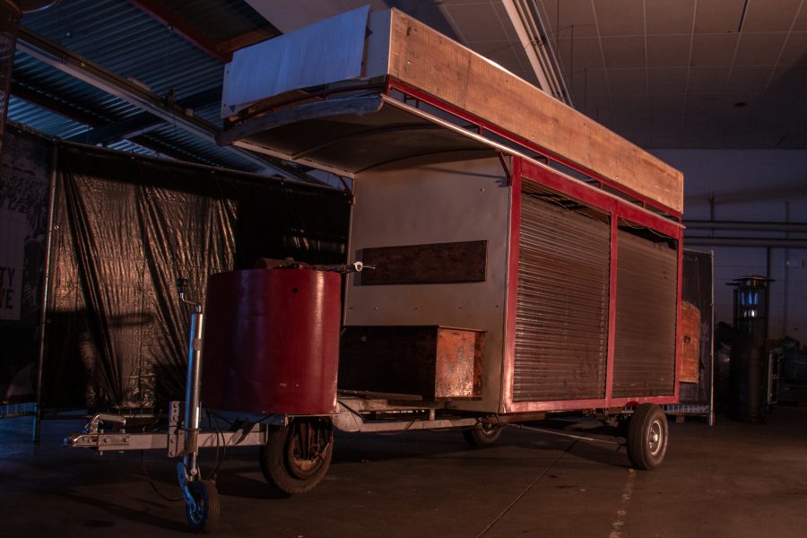 Vroeger werd oorspronkelijk deze kar door de melkboer gebruikt. Hij liep met een hond voor de kar gespannen. Dit vond men zo zielig dat de hond werd vervangen door een motor. Vandaar de naam ijzeren hond. Na de melk is het een pizzawagentje geworden. Op dit moment zijn we bezig deze kar om te bouwen tot schaafijs wagentje.