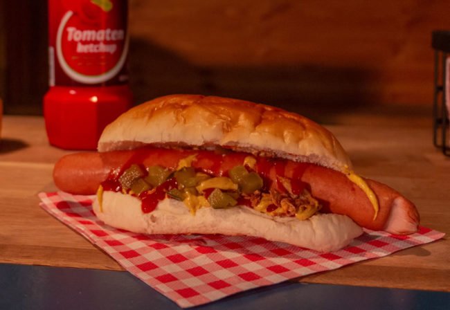 Een super dikke vette worst tussen een vers zacht broodje. Afgemaakt met de lekkerste toppings zoals; augurkjes, zuurkool, gebakken uitjes. Sausje erbij… heerlijk toch!
