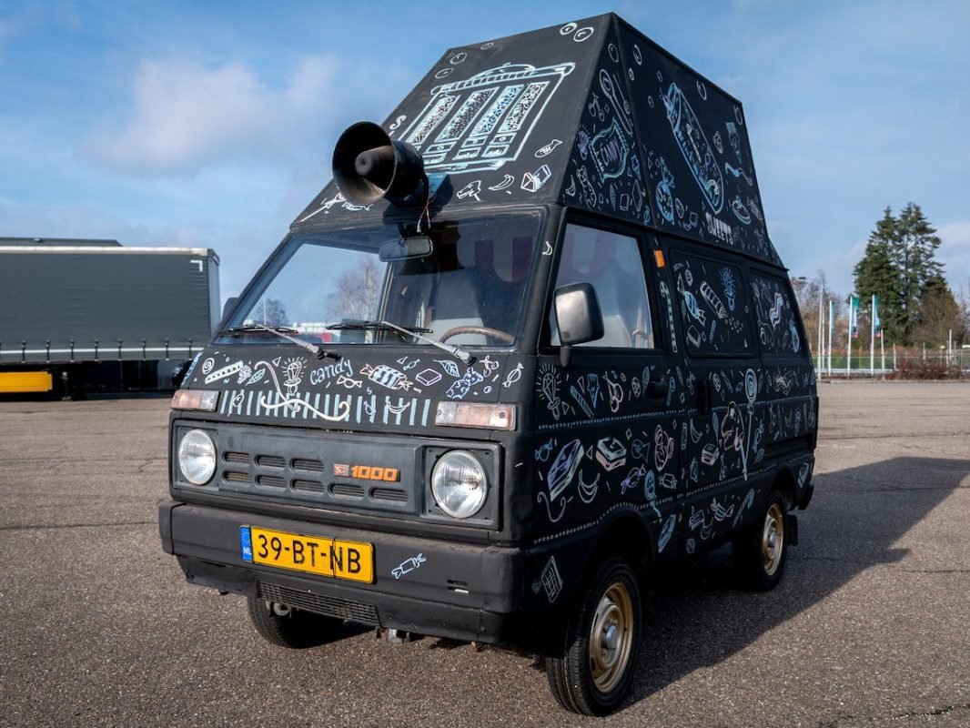 Deze bus uit 1984 heeft jarenlang aan een visvijver in de Ardennen gestaan. Daar hebben ze er altijd lekker forellen uit geserveerd. Hierna hebben wij hem een mooie metamorfose gegeven tot food truck. Dit was tevens onze eerste food truck.